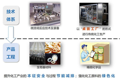 1)將超過百噸的反應裝置縮小至幾十升,以“桌面工廠”的實現(xiàn)傳統(tǒng)化工生產(chǎn),大幅提升過程安全性,節(jié)約生產(chǎn)用地;