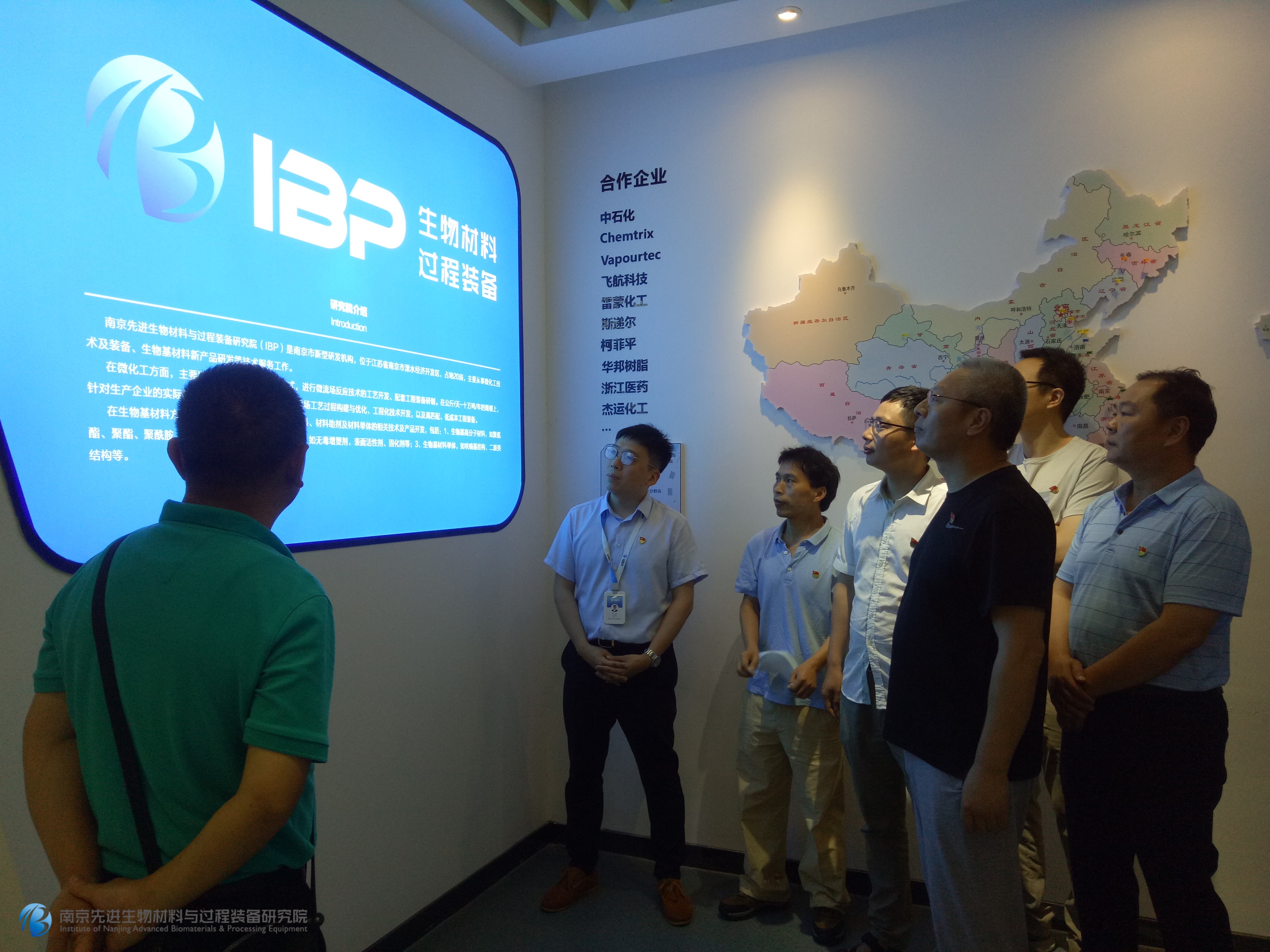 交流會后,季棟博士帶領大家參觀了研究院展廳、實驗室、中試車間,生動詳細地介紹了微流場反應技術(shù)、生物基材料等相關研究工作,并與劉所長一行探討雙方后期在項目運行以及分析測試等方面開展合作的可能性。